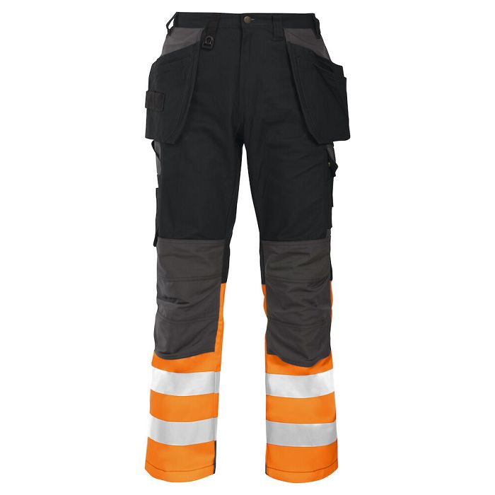 Pantalon 100% coton - 2 poches flottantes à clous a/renforts Cordura® pouvant être rangées dans les poches cavalières devant - Poche jambe gauche sous rabat + pression a/ 3 compartiments dont 1pour téléphone - Poche jambe droite 1 poche Cordura + compartiments + coutures décalées - 2 boucles réglables de marteau + 2 clips D - 275 g/m2 - Renforts CORDURA® aux poches / genoux / bas de pantalon pour une meilleure résistance - 2 boucles réglables de marteaux + 2 clips D - Compartiments genouillères intérieurs préformés réglables en hauteur + Cordura ® - Boucles Inbag - Attache pour le badge d'identification - Boucle + support étui à couteau - EN ISO 20471 Classe 1 - Certification Oekotex 100 - Lavage 60°