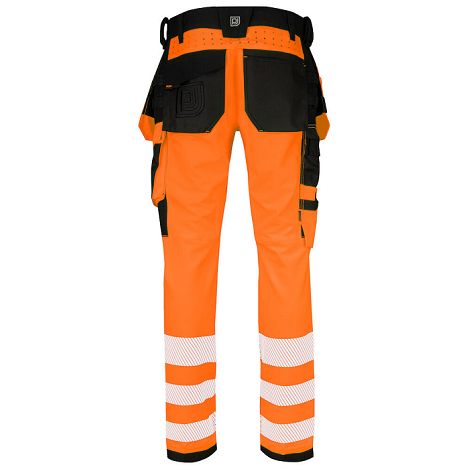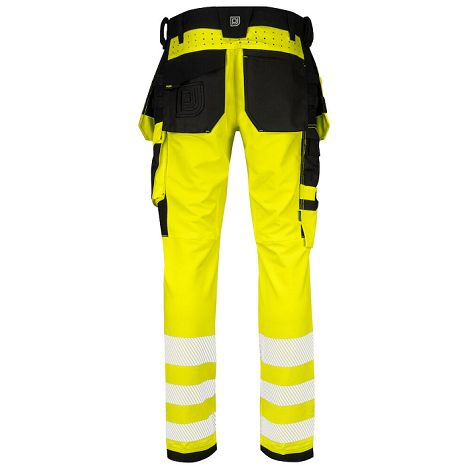 Pantalon de travail HV EN ISO 20471 en stretch intégral - Liberté de mouvement et confort maximal - Coupe moderne fittée - Les côtés supérieurs ne sont pas en stretch pour plus de stabilité - Poches flottantes détachables a/ renforts Cordura - Ouverture sous la taille pour une ventilation optimale - Poches latérales spacieuses - Poche jambe gauche pour les outils, stylos, téléphone a/ rabat magnétique - Support en D pour porte-badge- poche jambe droite pour mètre pliant + stylos et bouton support couteau -Ceinture plus large pour un meilleur confort - Poches arrières en Cordura dont une a/ rabat magnétique - Genoux préformés - Compartiments intérieurs pour genouillères réglables s/ 2 niveaux - Renforts Cordura aux poches flottantes + genoux pour une durabilité + importante - Possibilité de fixer la pochette MOLLE s/ chaque jambe