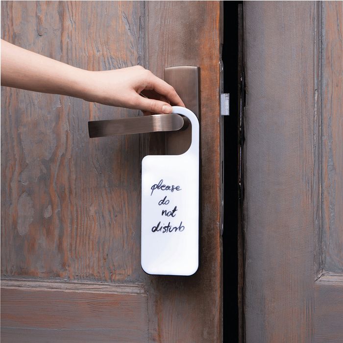 Accroche-porte LED DO NOT DISTURB avec bandeau LED intérieur, Bouton marche/arrêt latéral, avec marqueur non-permanent et gomme feutre, fonctionne avec piles 3xAAA (excl.)