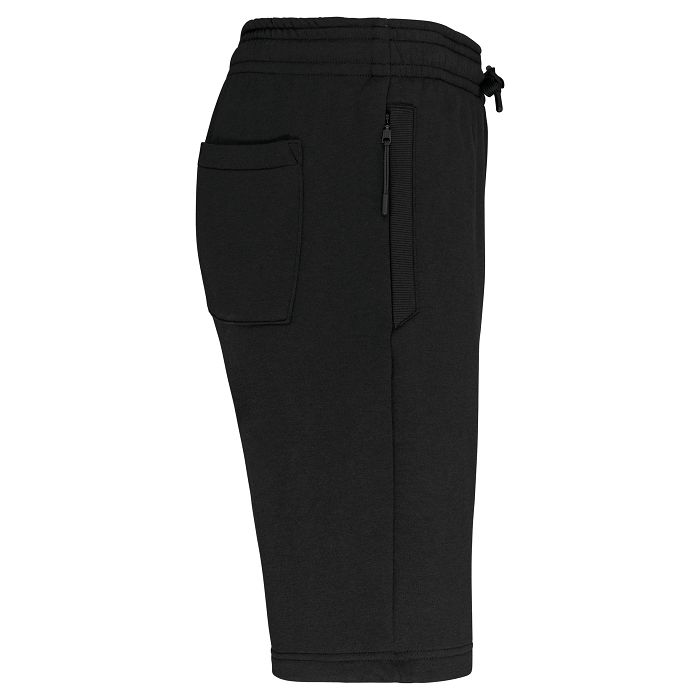 65% polyester / 35% coton. Molleton gratté. Ceinture élastiquée avec cordon de serrage ton sur ton. Pour plus de confort, finition intérieur taille par bande élastique au touché doux, contrastée avec liseré fluorescent. 2 poches côtés fantaisies avec fermeture à glissière, sac de poche en maille filet et une poche téléphone contrastée fluorescente. 1 poche plaquée arrière. Finition double aiguille au bas de jambe. Certifié STANDARD 100 by OEKO-TEX®N° CQ1007/7, IFTH.