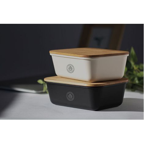 Boîte à lunch ou à sandwich en PP avec couvercle en bambou. Contenance : 1L.