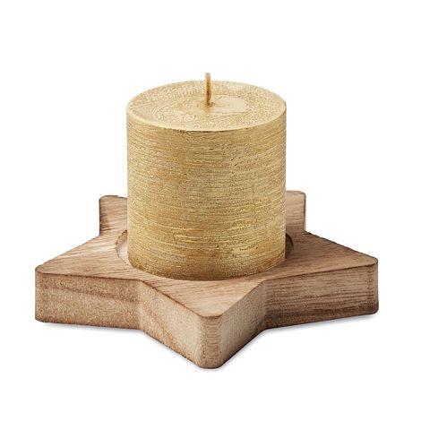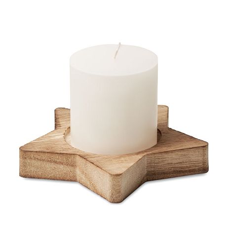 Bougeoir en peuplier en forme d'étoile avec bougie parfumée à la vanille.