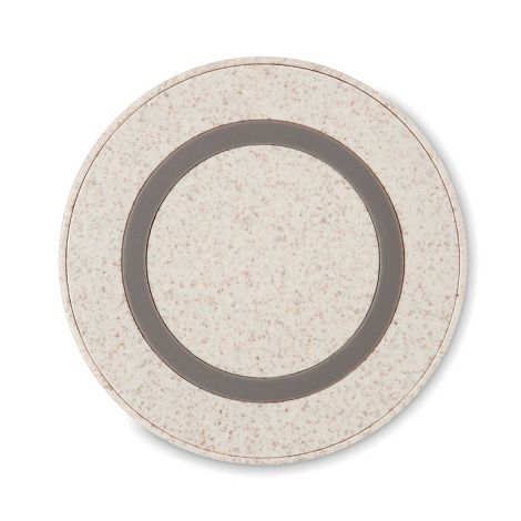 Chargeur sans fil en paille de blé (35%) et ABS (65%). Branchezl'appareil, placez y le smartphone pour commencer à charger. Sortie:DC5V/1A (5W). Compatible derniers Android, iPhone®® 8, 8S et X et plusrécents.