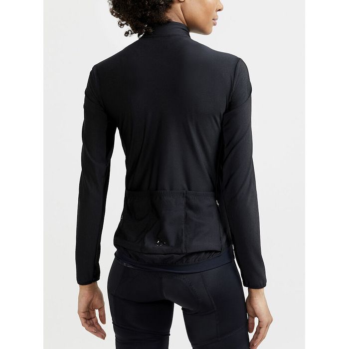 T-shirt cycliste Femme - manches longues - Jersey + stretch - Intérieur gratté pour une meilleure isolation - Polyester recyclé - 4 poches au dos dont 1 zippée - bandes silicones pour une meilleure tenue