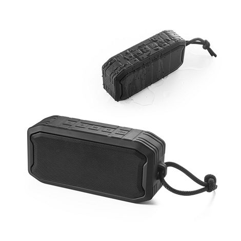 Enceinte en ABS (100% rABS) avec microphone intégré et résistant aux éclaboussures. La capacité de la batterie est de 1200 mAh et la puissance sonore est de 10W. L'enceinte dispose d'une transmission BT 5'0, d'un lecteur TF et d'une entrée auxiliaire. Il peut répondre aux appels, contrôler le volume et se connecter à la liste de lecture de votre appareil mobile. La grille peut être entièrement personnalisée. Câble USB-C pour charger inclus. Fourni dans une boite cadeau. 50 x 75 x 170 mm