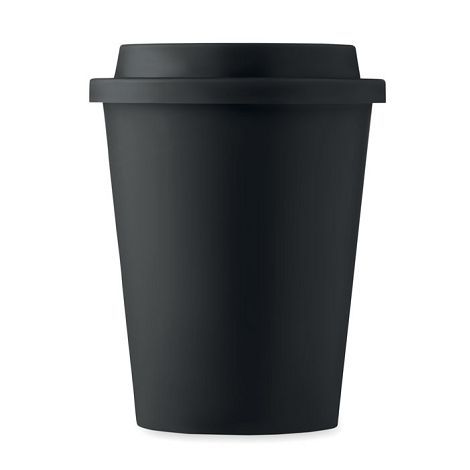 Gobelet à double paroi en PP. Capacité : 300 ml. Anti fuite.