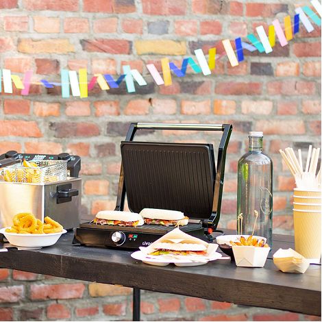 • Charnière ajustable pour s’adapter à l’épaisseur des aliments ou sandwichs