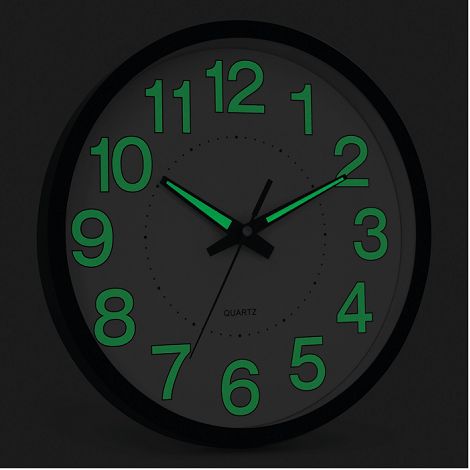 Horloge murale SUN: avec mouvement à quartz, affichage analogique de l’heure, chiffres et aiguilles fluorescents (s’allument la nuit), 1 pile AA (excl.)