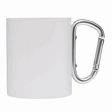 Mug en acier inoxydable DEEP VALLEY : double paroi, coloré à l’extérieur, avec mousqueton argenté (le mousqueton ne convient PAS comme une sécurité), contenance env. 300 ml