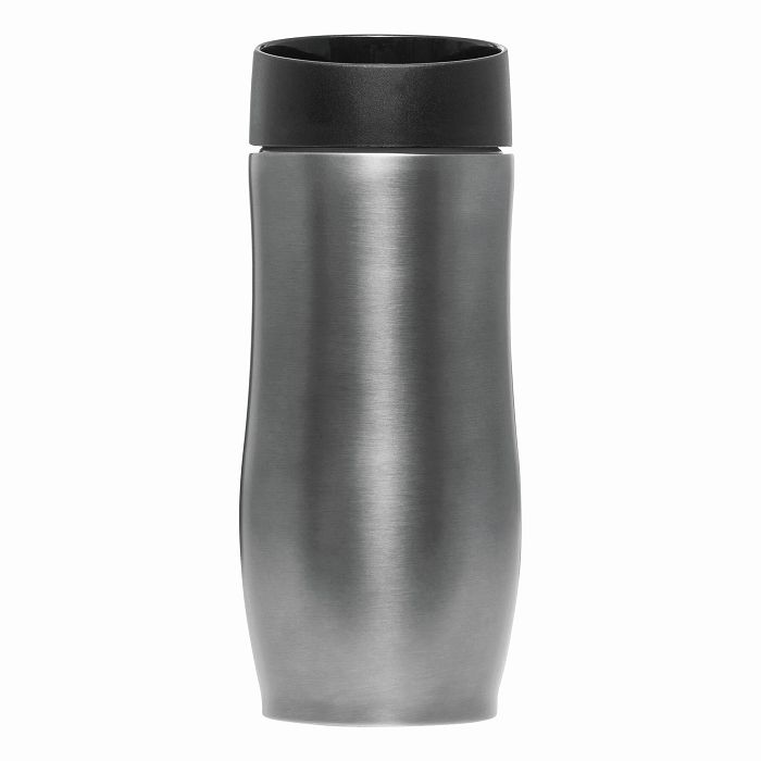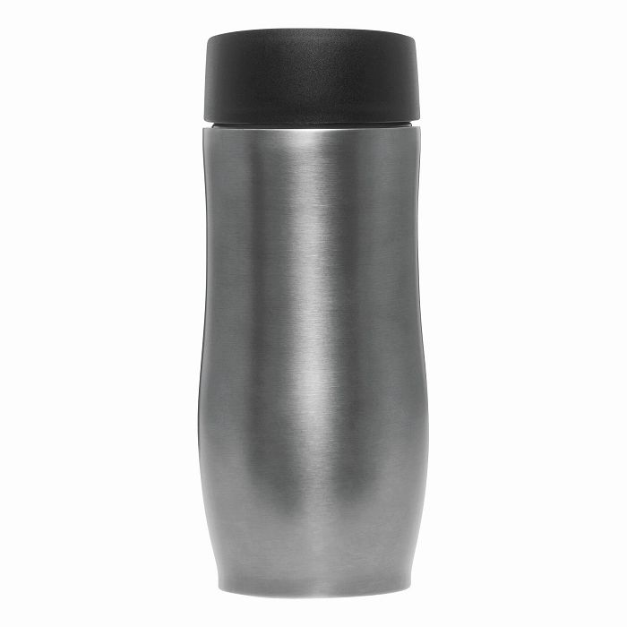 Mug Isotherme CLASSICO, double paroi: intérieur et extérieur acier inoxydable, Bouchon en plastique à vis, bouton poussoir OPEN / CLOSE avec ouverture intégrée, pied gommé, Contenance env. 380 ml