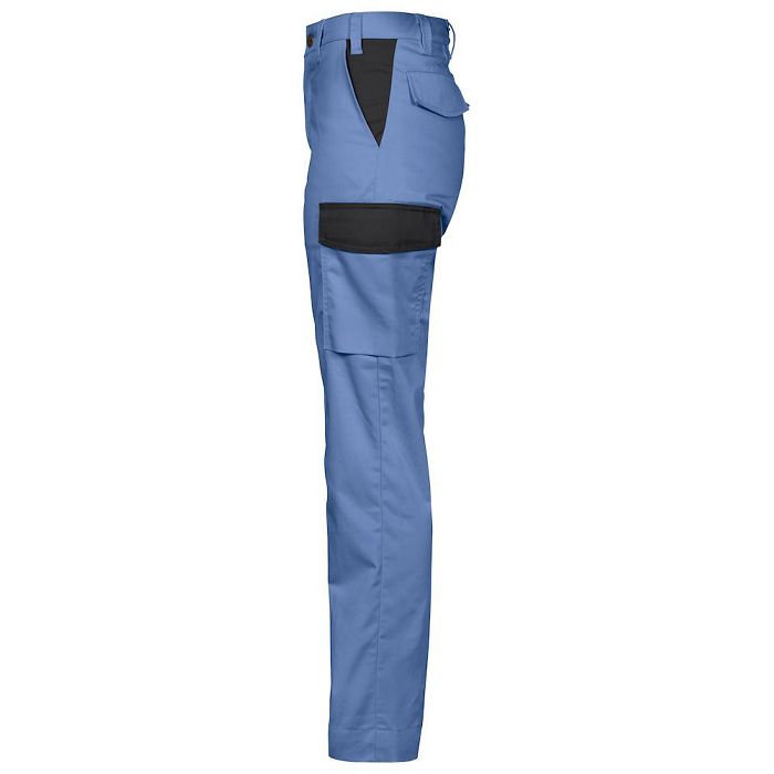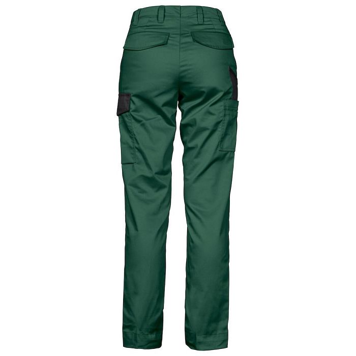 Valorisez votre communication sur un textile professionnel et agréable à porter par vos collaborateurs. Ce pantalon de travail léger pour femme personnalisable est dôté de poches sur les jambes et de poches à l'arrière avec rabat. Ce pantalon a une coupe moderne. Les pantalons rouge, bleu ciel et vert forêt présentent des contrastes noirs.