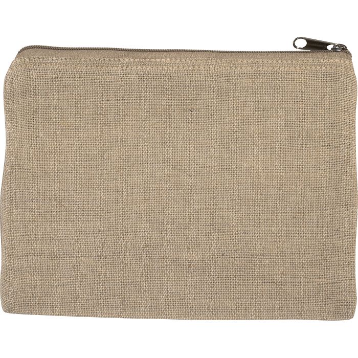 Pochette en toile de jute et coton (juco). Fermeture zippée de couleur contrastée.