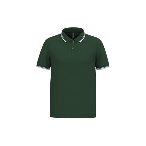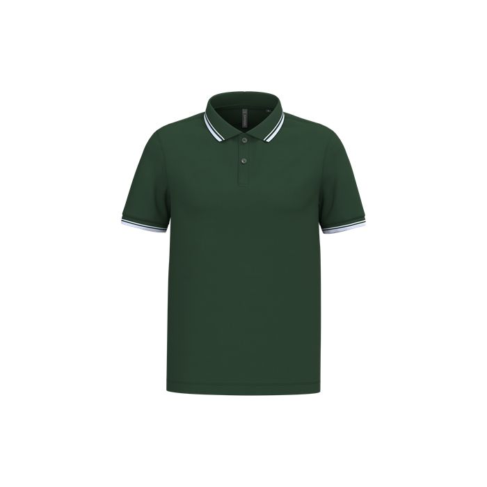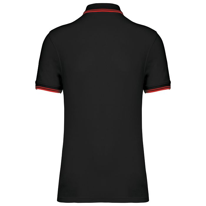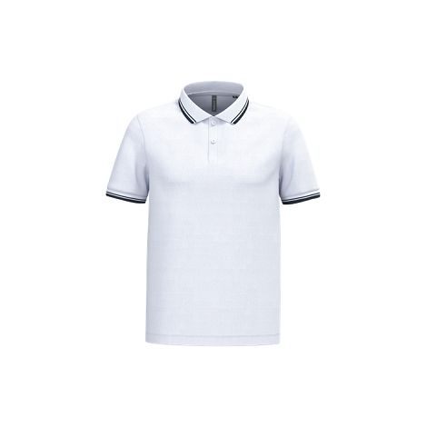 100% coton peigné. Pour les coloris chinés : 92% coton / 8% viscose. Maille piquée. Coupe ajustée. Patte de boutonnage col 2 boutons ton sur ton. Bande de propreté tissu principal à l'encolure. Fentes côtés avec bande de finition du tissu principal. Finitions bord-côte avec liserés contrastés au col et bas de manches. Double aiguille bas de vêtement.