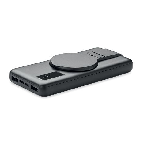 Chargeur sans fil (15W) powerbank (10000 mAh) en ABS avec support magnétique. Entrée : micro B, Type-C. Sortie 2x USB-A In/Output : Type- C. Sortie : DC 9V/1,66A (15W) charge rapide. Compatible iPhone® 12 et plus récents. Power delivery (PD) pour recharger les ordinateurs portables les plus récents.