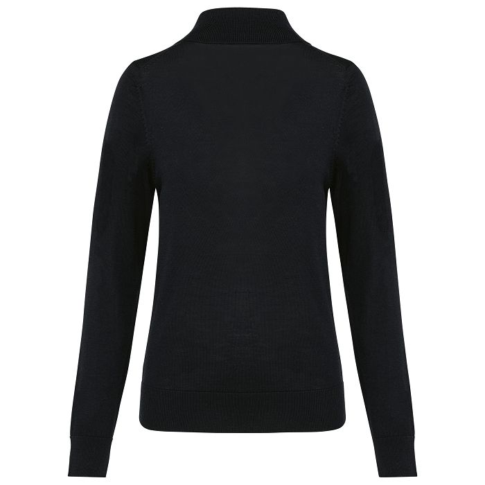100% Mérinos. Laine extra-fine peignée. Jauge 14. Fully-fashioned : tricoté dans la forme et assemblé sur machine de remaillage. Col roulé, poignets et bas du vêtement rib 1 x 1.
