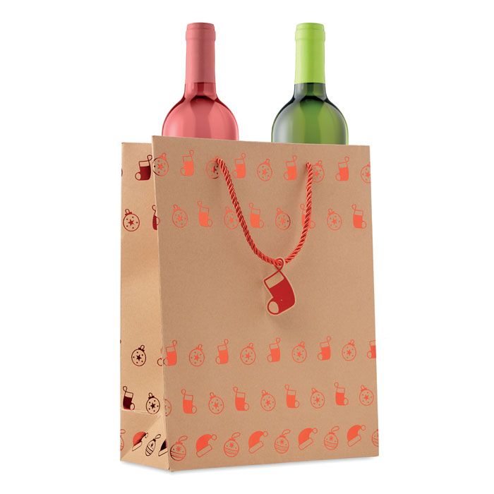 Élégant sac cadeau en papier kraft avec motif saisonnier. Étiquette cadeau incluse. 250 gr/m².