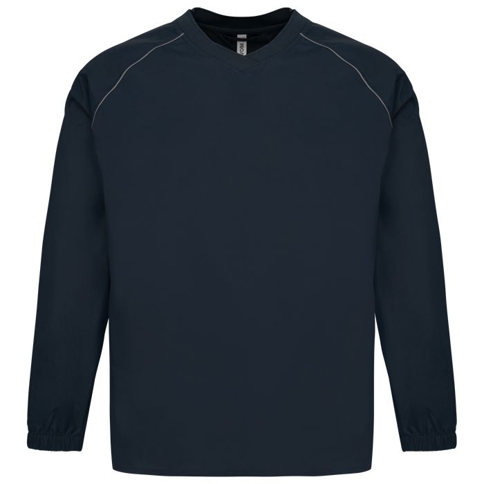100% polyamide oxford. Enduction PU. Tissu imperméable 1500mm. Coutures thermosoudées aux emmanchures. Manches raglan. Encolure en V en bord-côte 1x1. Œillets d'aération dessous de bras. Passepoil contrasté aux emmanchures. Bas de manches élastiqués. Finition ourlet en bas du vêtement. Etiquette de marque détachable.