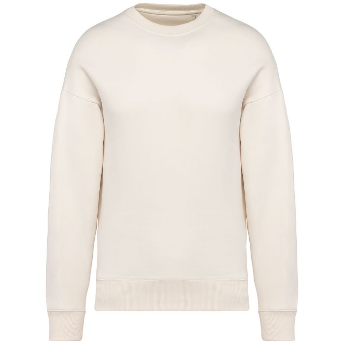 85% coton biologique et 15% polyester recyclé post-consumer. Coton peigné ringspun. Coupe oversize avec épaules tombantes. Molleton gratté 3 fils LSF (Low Shrinkage Fleece : molleton pré-rétréci). 1/2 lune au dos. Bord côte 2 x 1 au col, bas de vêtement et bas manches. Double surpiqûre à cheval sur le col, les bas de manches et le bas de vêtement. Bande de propreté intérieure en chevrons ton sur ton à l’encolure. Certifié STANDARD 100 by OEKO-TEX®N°CQ1007/7, IFTH.