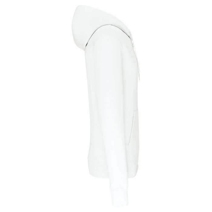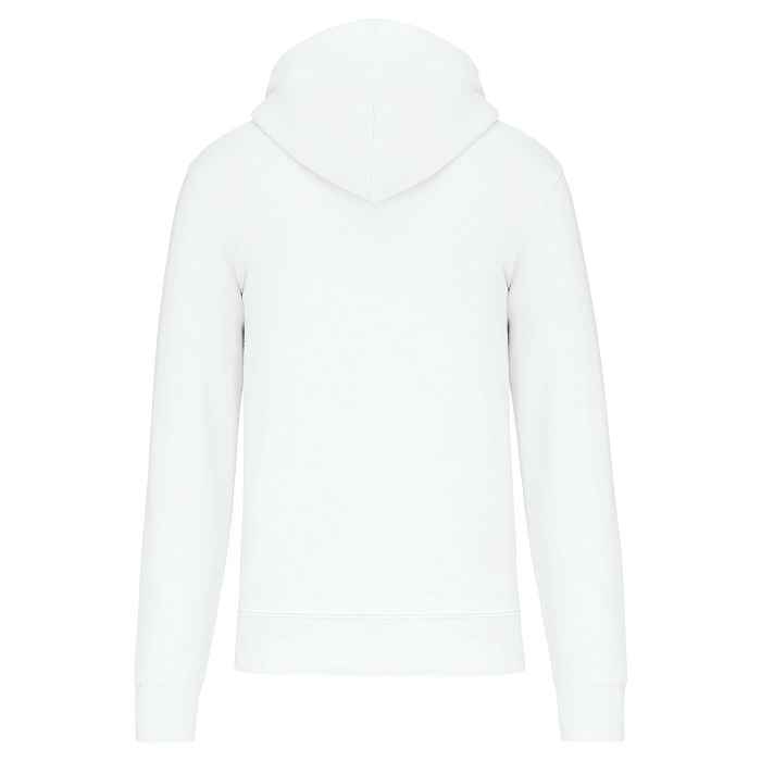 85% coton biologique / 15% polyester recyclé post-consumer. Surface extérieure 100% coton. Molleton gratté 3 fils LSF (Low Shrinkage Fleece). Coton peigné. Lavage aux enzymes. Coupe droite. Poches kangourou. Fermeture zippée nylon ton sur ton. Capuche doublée 100% coton, coton jersey 180g. Bord-côte 1x1 montage tubulaire pour une meilleure finition au bas de manches et de vêtement. Bande de propreté jersey ton sur ton et finition demi-lune intérieur col. Finition double aiguilles sur bas de manches, bas de vêtement et col. Pas d'étiquette de marque au col, juste une puce de taille pour faciliter la personnalisation. Certifié STANDARD 100 by OEKO-TEX® N° CQ 1007/7, IFTH.