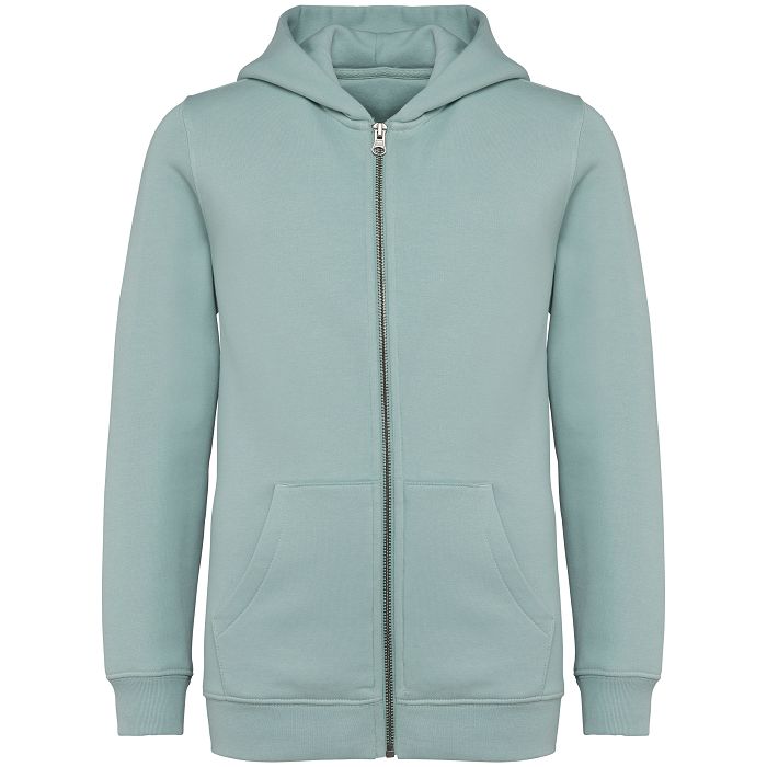 85% coton biologique / 15% polyester recyclé post-consumer. Coton peigné ringspun. Coupe ajustée. Molleton gratté 3 fils LSF (Low Shrinkage Fleece : molleton pré-rétréci). Lavé aux enzymes. Zip en métal recyclé. 1/2 lune au dos. Poche kangourou avec simple surpiqûre. Bord cote 1 x 1 bas de vêtement et bas de manches. Double surpiqûre sur bas de manches, emmanchures et bas de vêtement. Capuche à pince doublée en matière principale. Finition intérieure du zip avec biais de propreté en jersey. Encolure avec bande de propreté intérieure en chevrons. Certifié STANDARD 100 by OEKO-TEX®N°CQ1007/7, IFTH.