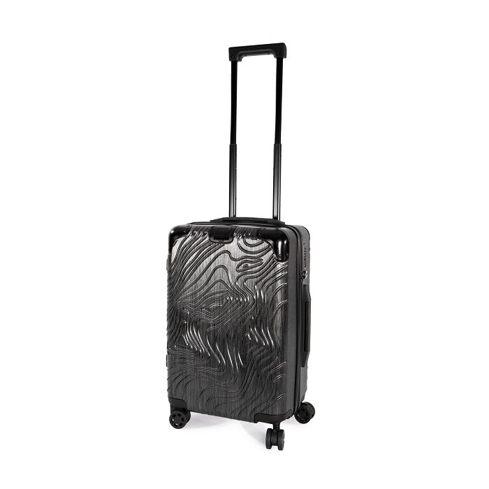 100 % polycarbonate. Trolley taille cabine. Imaginé avec un design original représentant les reliefs du Pic de l'Aneto dans les Pyrénées, ce trolley en aluminium est doté de 4 roues multidirectionnelles et de pieds de protection latéraux pour poser la valise sur le côté. Les angles sont réalisés en matériaux en caoutchouc pour une meilleure protection. Pour plus de confort il comporte : une poignée supérieure extensible et une poignée sur le côté, une sangle rétractable sur le devant pour accrocher et transporter une sacoche porte document, deux compartiments internes dont un avec une sangle de maintien et un autre avec une fermeture glissière et poches pour accessoires. Pour votre sécurité, ce trolley est équipé d'une fermeture par TSA par combinaison.