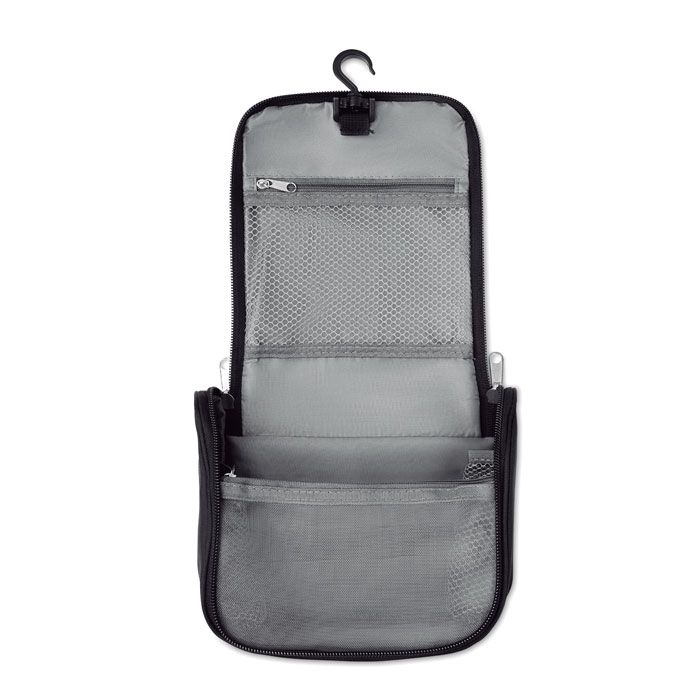 Vanity en polyester haute densité. Plusieurs compartiments et une poche en maille complètent l'équipement du sac.