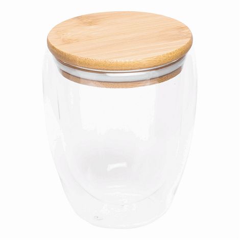 Verre BAMBOO ART M, double paroi, avec couvercle en bambou: transparent, résistant à la température, capacité 350 ml env.