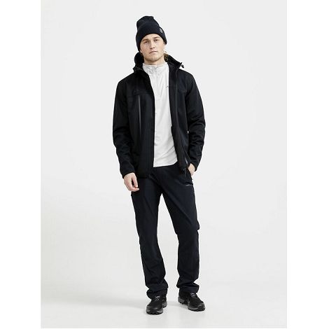 Veste softshell technique Homme - tissu coupe-vent recyclé - intérieur doux brossé - super extensibilité - détails scellés - deux poches latérales zippées + une poche intérieure zippée - capuche ajustable - un élastique à la taille et aux