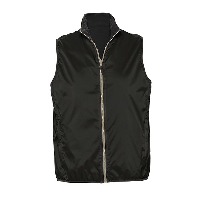 2 produits en 1 ! Un cadeau d'entreprise à offrir à tous vos employés ! Bodywarmer unisexe réversible personnalisable doté d'une ouverture avec zip ton sur ton, réversible avec 2 poches. Col et corps doublés en polaire contrastée.
