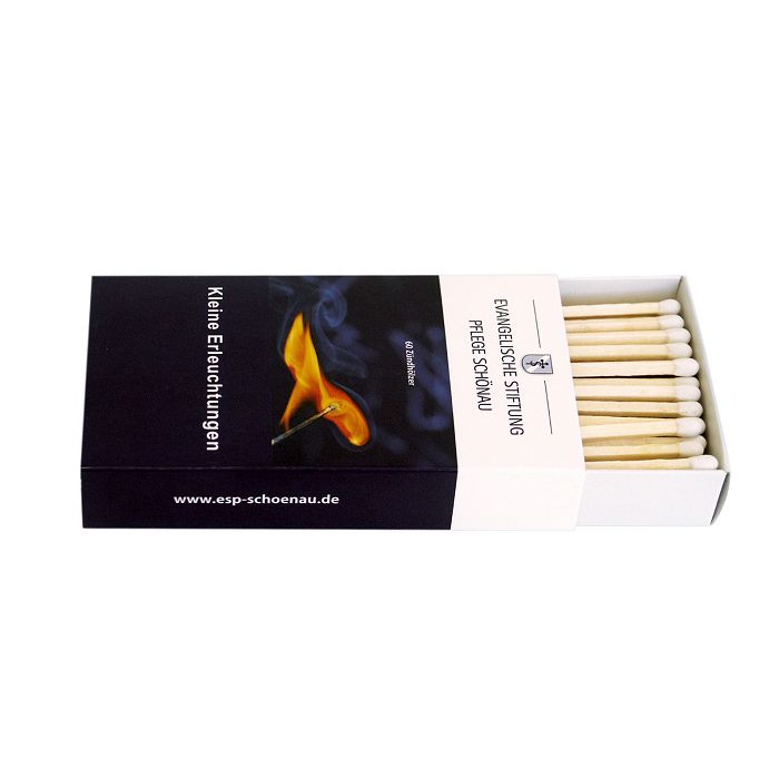 Boite d'allumettes: environ 48-50 allumettes fabriquées et personnalisées en Allemagne. Tiges en bois naturel : 14 coloris differents possibles. Quantité minimum de commande de 1000 pièces. Délai de livraison de 3 à 5 semaines.