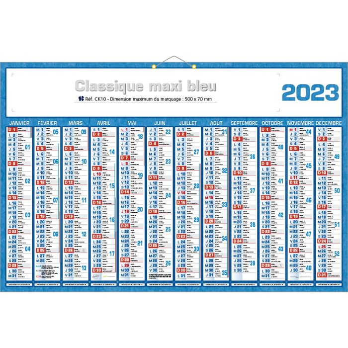 Grille : 12 mois recto - fêtes - n° semaine - lunaisons - quantièmes - congés scolaires - jours ouvrables et jours ouvrés
