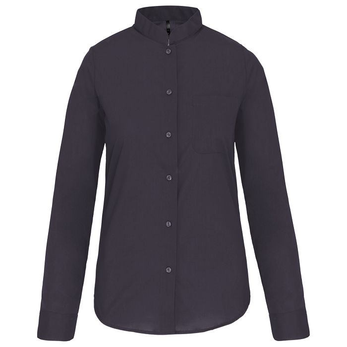 65% polyester / 35% coton popeline. Entretien facile. Col mao non boutonné. Boutons ton sur ton. Poche poitrine côté gauche en V. Poignet réglable à angles arrondis avec patte de manche indéchirable. 1 bouton de rappel. Bas arrondi. Certifié STANDARD 100 by OEKO-TEX®N° CQ1007/8, IFTH.