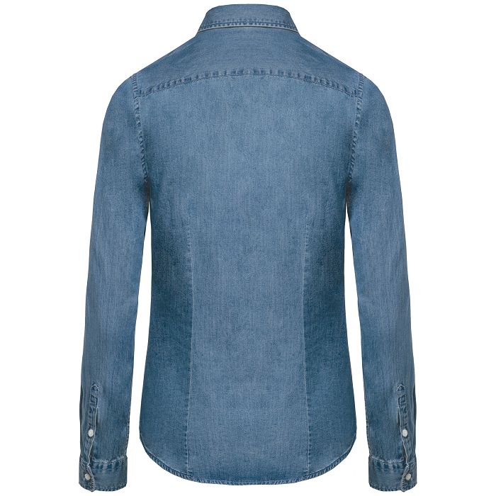 100% coton. Toile légère effet denim. Matière souple et confortable. Coupe cintrée mode. Col avec bande fantaisie intérieure. Boutons contrastés. Poignets réglables. Ce produit a subi un traitement spécial et présente un aspect volontairement vieilli. Ce procédé de fabrication implique des variations de couleurs d'un produit à l'autre et rend chaque pièce unique. Certifié STANDARD 100 by OEKO-TEX® N° CQ 1007/8, IFTH.