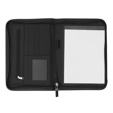 Conférencier CREADO, format A5, avec bloc notes, fermeture éclair, et plaque en aluminium pour marquage (gravure)