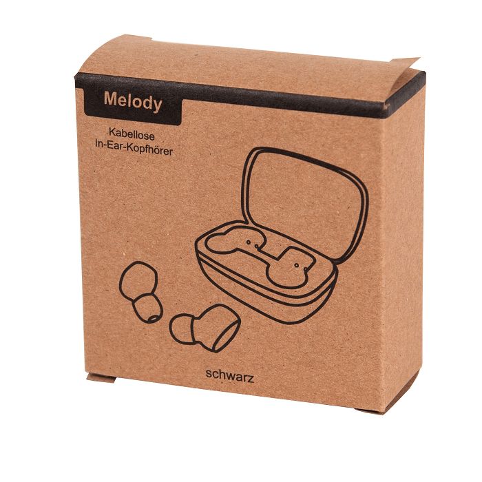 Écouteurs oreillettes sans fil MELODY : avec fonction mains libres, compatible Bluetooth®, portée : environ 10 m, bouton pour répondre/raccrocher les appels et fonction recherche et retour, fonctionnement stéréo ou mono possible, avec câble de chargement USB avec connecteur USB Type-C (longueur environ 19 cm), LED rouge de contrôle de charge, le boîtier de rangement est également une station de chargement, capacité du casque : 30 mAh, station de charge : 180 mAh