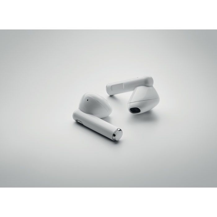 Écouteurs stéréo sans fil ABS True Wireless Stereo (TWS) 5.3 avec microphone, batterie 30 mAh et boîtier de charge 200 mAh. Durée d'écoute d'environ 4 heures. Appairage automatique.