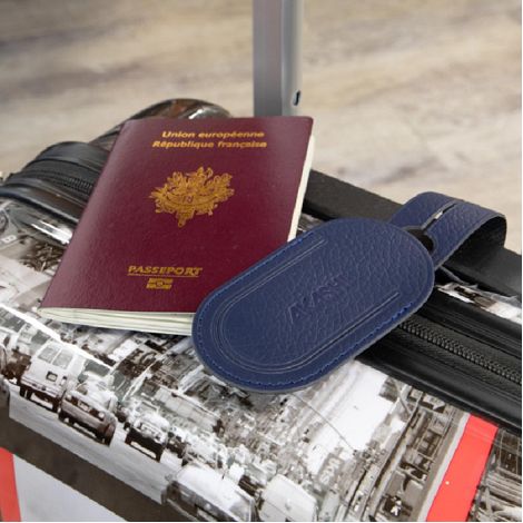 ETIQUETTE BAGAGE CUIR RECYCLÉ BLEU MARINE - CONCEICAO DAS ALAGOAS