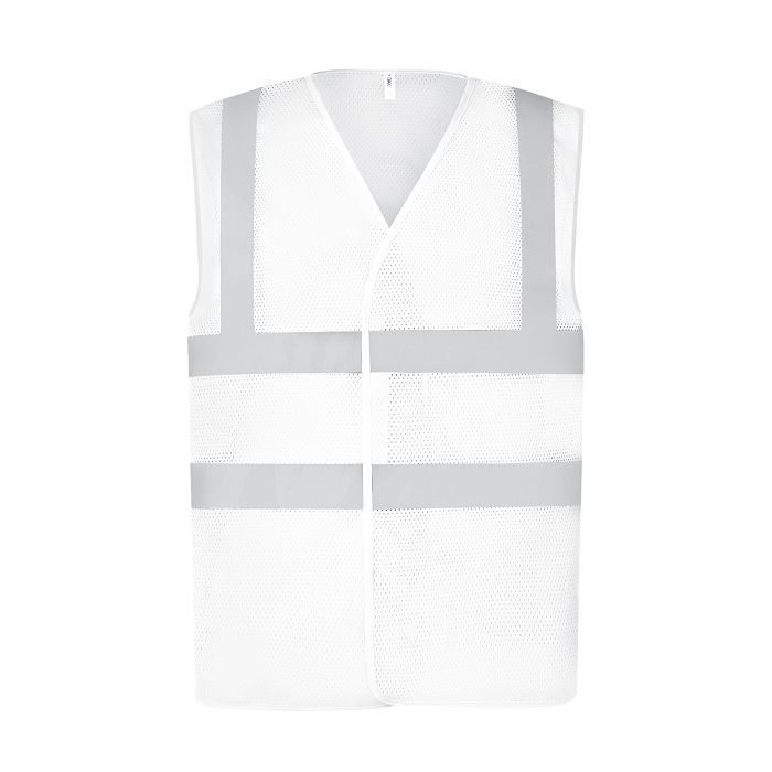 100% polyester. 100% polyester recyclé. Fabriqué à partir de bouteilles en plastique PET. Maille légère respirante. Bandes réfléchissantes de 5 cm de large autour du corps et une sur chaque épaule. Fermeture par Velcro® à l'avant . Conforme à la norme nationale américaine ANSI/ISEA 107-2004 et à la norme EN ISO20471:2013 catégorie 2 : uniquement Hi Viz Orange et Hi Viz Yellow.