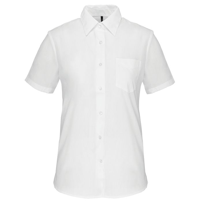 65% polyester / 35% coton. Tissu popeline. Entretien facile. Col non boutonné. Boutons ton sur ton. Poche poitrine côté gauche en V. 1 bouton de rappel. Bas arrondi. Certifié STANDARD 100 by OEKO-TEX®N° CQ1007/8, IFTH.