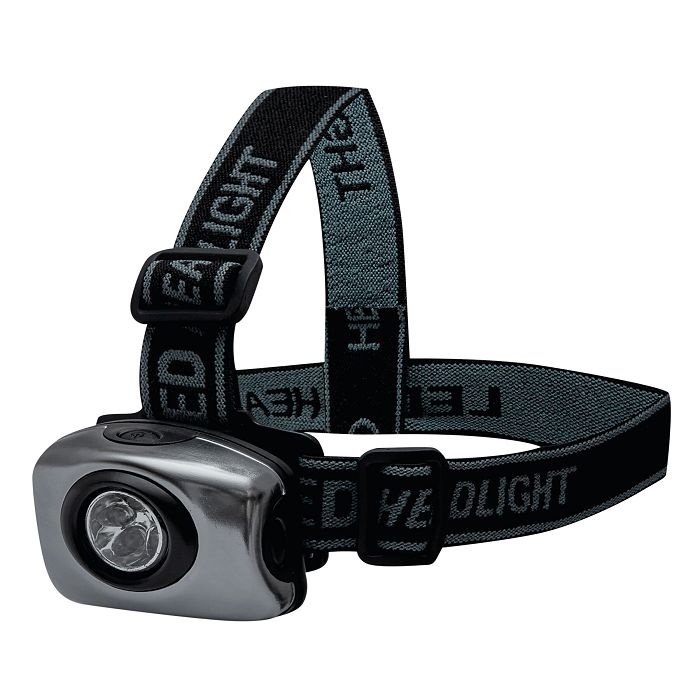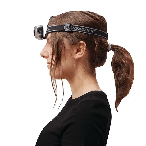 Lampe frontale EXPEDITION: 5 DEL, s´allume ou clignote, bouton marche / arrêt, bandeau en nylon réglable en 3 points