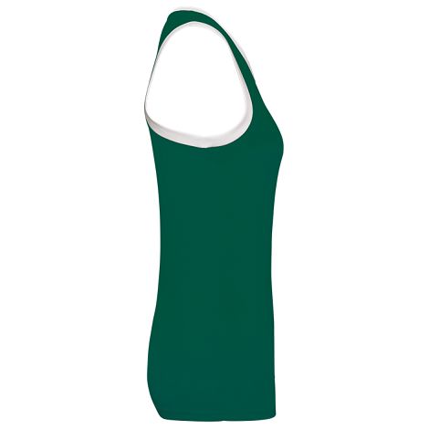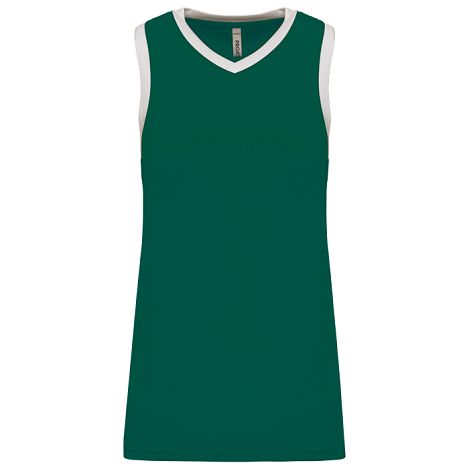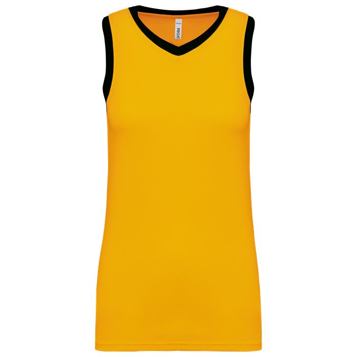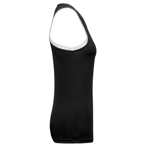 100% polyester birdseye. Encolure en V. Biais contrasté col et emmanchures. Finition double aiguille bas de vêtement. Etiquette de marque détachable.