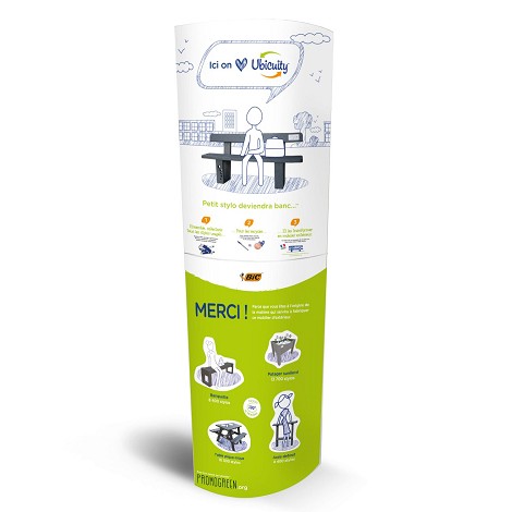Le pack contient 500 stylos 4 couleurs avec le logo UBICUITY et le vôtre, 1 collecteur, 1 totem, 3 posters, 1 chevalet.