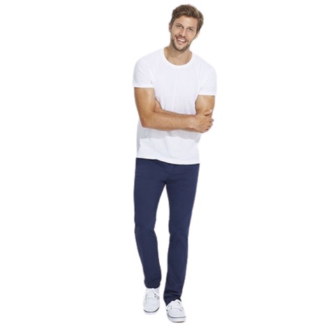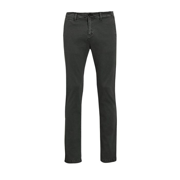Pantalon homme style chino. Valorisez votre communication sur un textile tendance et agréable à porter par vos collaborateurs. Fermeture à glissière, passants pour ceinture, deux poches frontales à l'italienne sur le devant et deux poches passepoilées à l'arrière.