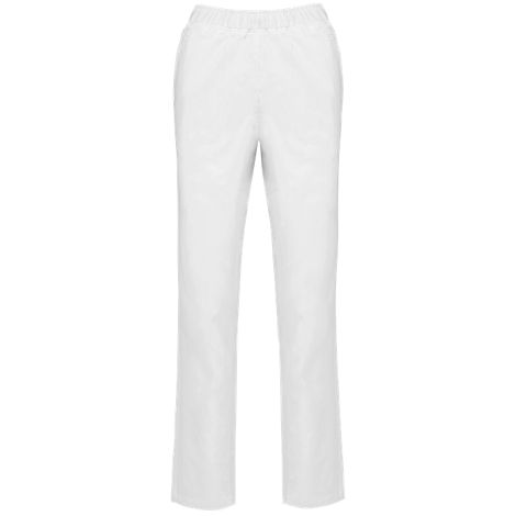 65% polyester / 35% coton. Tissu sergé. Norme ISO 15797 lavage industriel 75°C (20 lavages). 2 poches italiennes côtés + 1 poche plaquée arrière avec renforts. Ceinture élastiquée avec cordon de serrage à l'intérieur. Etiquette de marque Tear Away.