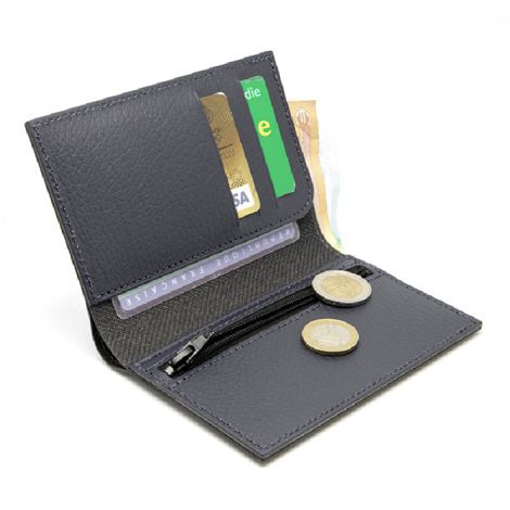 PORTEFEUILLE VERTICAL EN CUIR RECYCLÉ GRIS - COREMAS