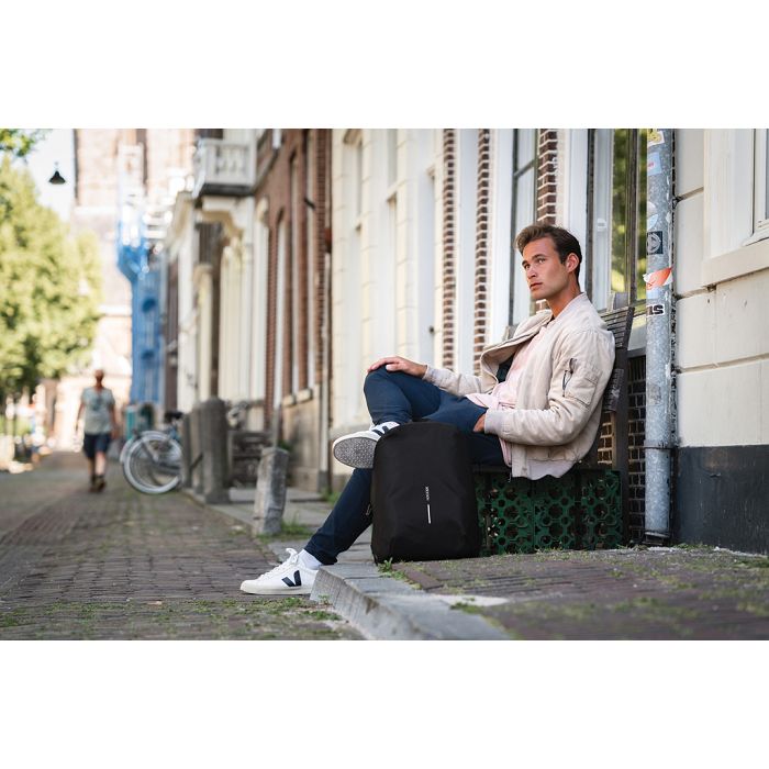 Dans le compartiment principal, vous pouvez vous organiser grâce à un compartiment rembourré pour ordinateur 15,6 pouces, une poche pour un carnet et des petites poches. Le sac est extensible, ce qui donne de l'espace supplémentaire pour ranger tout ce dont vous avez besoin. Fabriqué dans un matériau déperlant à partir de matériaux recyclés rPET, l'utilisation de matériaux recyclés et les déclarations d'impact sur la réduction de la consommation d'eau sont garanties grâce au traceur et à la blockchain AWARE. Chaque sac permet de réutiliser 38 bouteilles en plastique et d'économiser 22 litres d'eau. Modèle déposé®