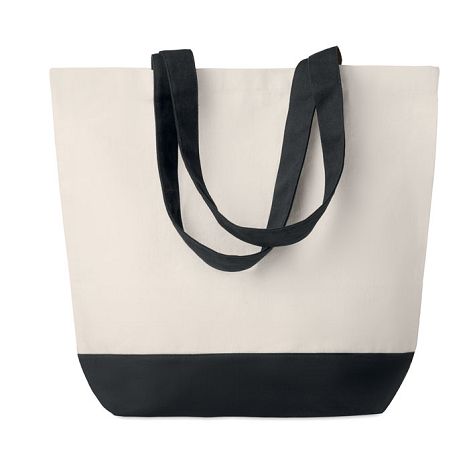 Sac de plage ou shopping en toile 280 gr/m² avec détail coloré en bas et poignées assorties (poche intérieure).