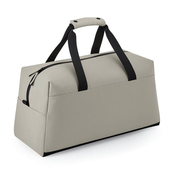 100 % Polyester Recyclé, revêtement polyuréthane mat pans PVC. Sac de voyage en tissu déperlant au style minimaliste. Compartiment principal avec fermeture zippée plus longue pour un accès plus facile. Poche zippée intérieure pour objets de valeur. Base double épaisseur pour plus de durabilité. Poignée en tissu assorti et anses en toile. Peut se porter à la main ou à l'épaule. Étiquette détachable TearAway, facile à ré-étiqueter.