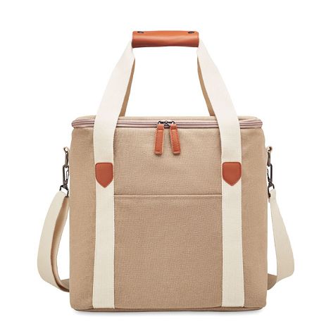 Grand sac glacière en toile lavée avec sangle en coton. 450 gr/m². Isolation : PEVA 15C avec mousse PE 6mm.