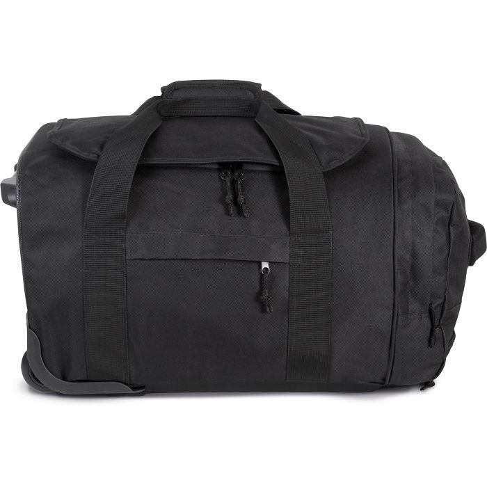 Sac trolley en polyester 600D avec fermeture à rabat zippé. Poche côté zippée. Base avec revêtement protecteur en relief. Compartiment à chaussures zippé. Tient debout même lorsqu'elle est vide. Poignée télescopique avec rangement caché.